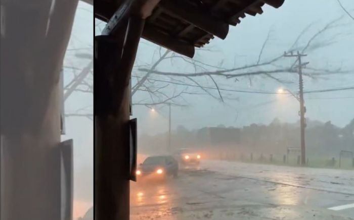 Um temporal assustador foi registrado na tarde desta segunda-feira em São Francisco do Sul. Vídeos compartilhados nas redes sociais mostram que o evento pode ter sido provocado por uma microexplosão, fenômeno semelhante ao que atingiu a cidade de Gaspar na semana passada.