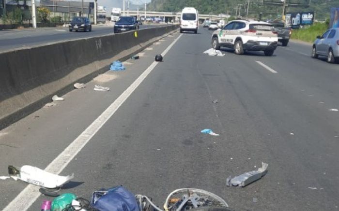 Imagens enviadas por leitores mostram a bike elétrica caída toda despedaçada na pista, nas proximidades da nova alça de acesso da BR 101, no sentido Brusque-Itajaí. Populares contaram que a van seguia para Itajaí, quando o ciclista cruzou a pista. A van não conseguiu desviar e atingiu a bike já na última pista da esquerda.