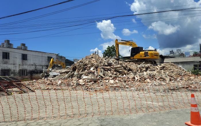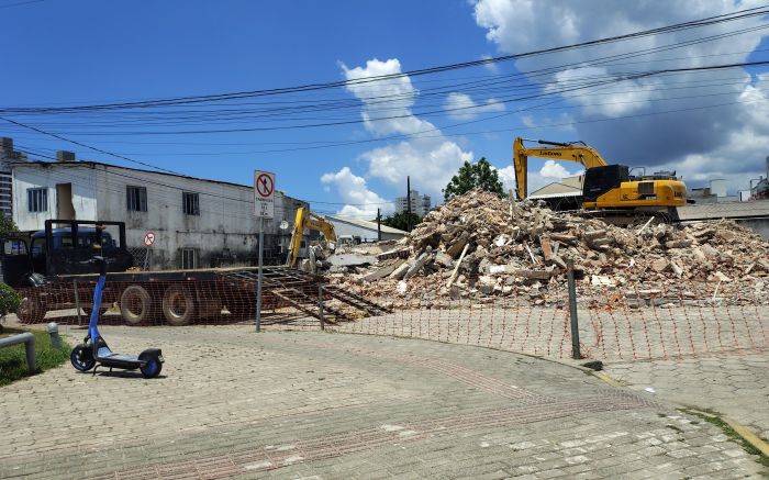 Um dos últimos imóveis necessários para o avanço da rua do Porto teve a demolição concluída nesta quinta-feira pela Prefeitura de Itajaí. O prédio, que já abrigou a garagem de carros do Jacaré e mais recentemente funcionava como restaurante, ficava na esquina das ruas José Francisco Constantino e Olegário de Souza Júnior e foi colocado abaixo pelas máquinas do município.
