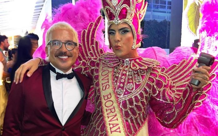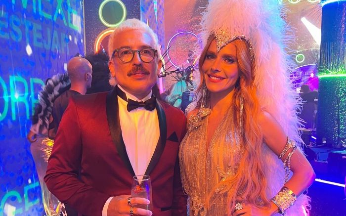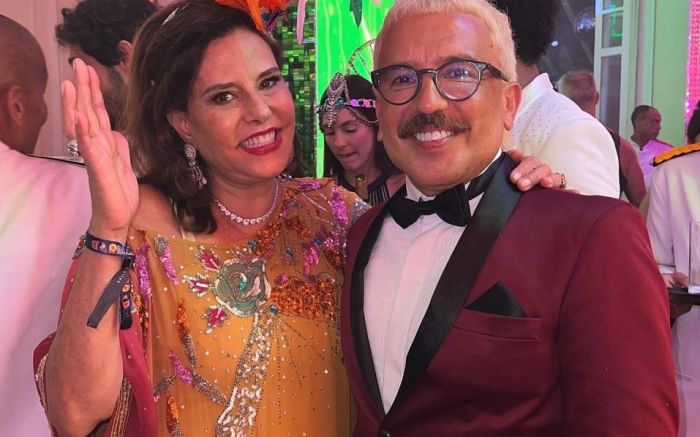 Alex Ferrer apostou num smoking com paletó bordô e calça preta, assinado pela Manoela Mikus Maison, de Balneário Camboriú. Para o evento, ele também mudou o visual com harmonização facial feita pelo doutor Denis Pierry e uma transformação no cabelo, que passou a ser loiro platinado. “Sem dúvida, o Baile da Vogue é a festa mais concorrida entre os famosos. Fico muito lisonjeado em receber esse convite mais uma vez e, de alguma forma, representar Santa Catarina de forma glamourosa”, afirmou Alex Ferrer.