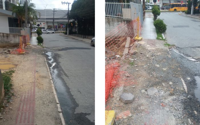 "Há mais de 60 dias a rua Suécia, na Praia Brava, está com a calçada e a via sem recuperação, após obras ...