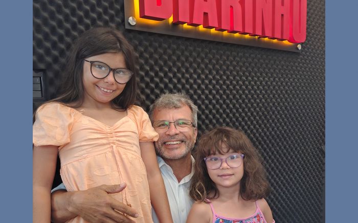O DIARINHO recebeu a visita de Catarina e Madalena na manhã de segunda-feira. As irmãs vieram acompanhar no estúdio do DIARINHO a participação do pai, professor Sérgio Saturnino, na entrevista do programa Diz aí, com o presidente do Sindilojas e Conselho das Entidades, Bento Ferrari. As meninas deram um show de simpatia e educação. Obrigada pela visita e voltem sempre!
