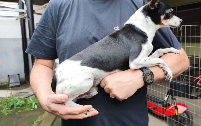 Um cachorrinho encontrado na orla de Balneário Camboriú por uma família de Itajaí precisa de um novo ...