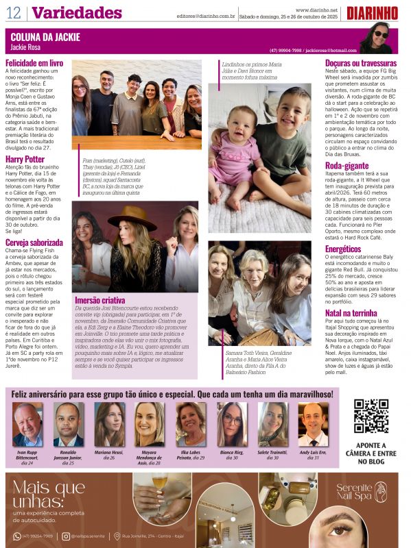 BC já tem seu “Super Gyro Tower” que foi inaugurado, na última sexta, 17, no Parque Unipraias. A atração é a única do tipo na América Latina e permite um novo olhar sobre Balneário Camboriú, a 300 metros de altura. Um equipamento inovador que oferece uma experiência única e contemplativa onde os vis...