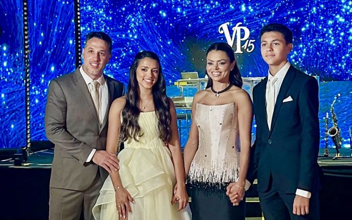 Junto com os pais Karol e Júnior Pavan e o mano Leonel Neto, a linda Valentini Pavan comemorou entre muitos amigos e familiares, com festerê dos bons, seus 15. Felicidades!