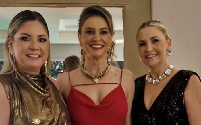 Roberta Zimmermann com as filhas Maria Eduarda e Maria Antônia que debutou no Tabajara Tênis Clube, em Blumenau